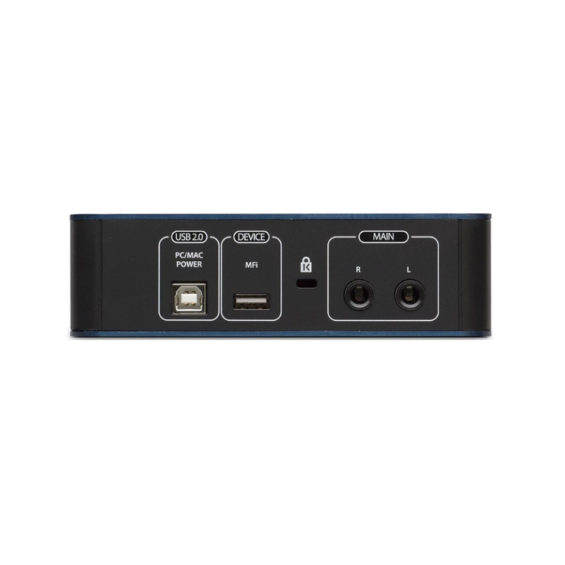 - Zero-latency monitoring via internal analog mixer (iOne: fixed 50/50 mix via Direct button)