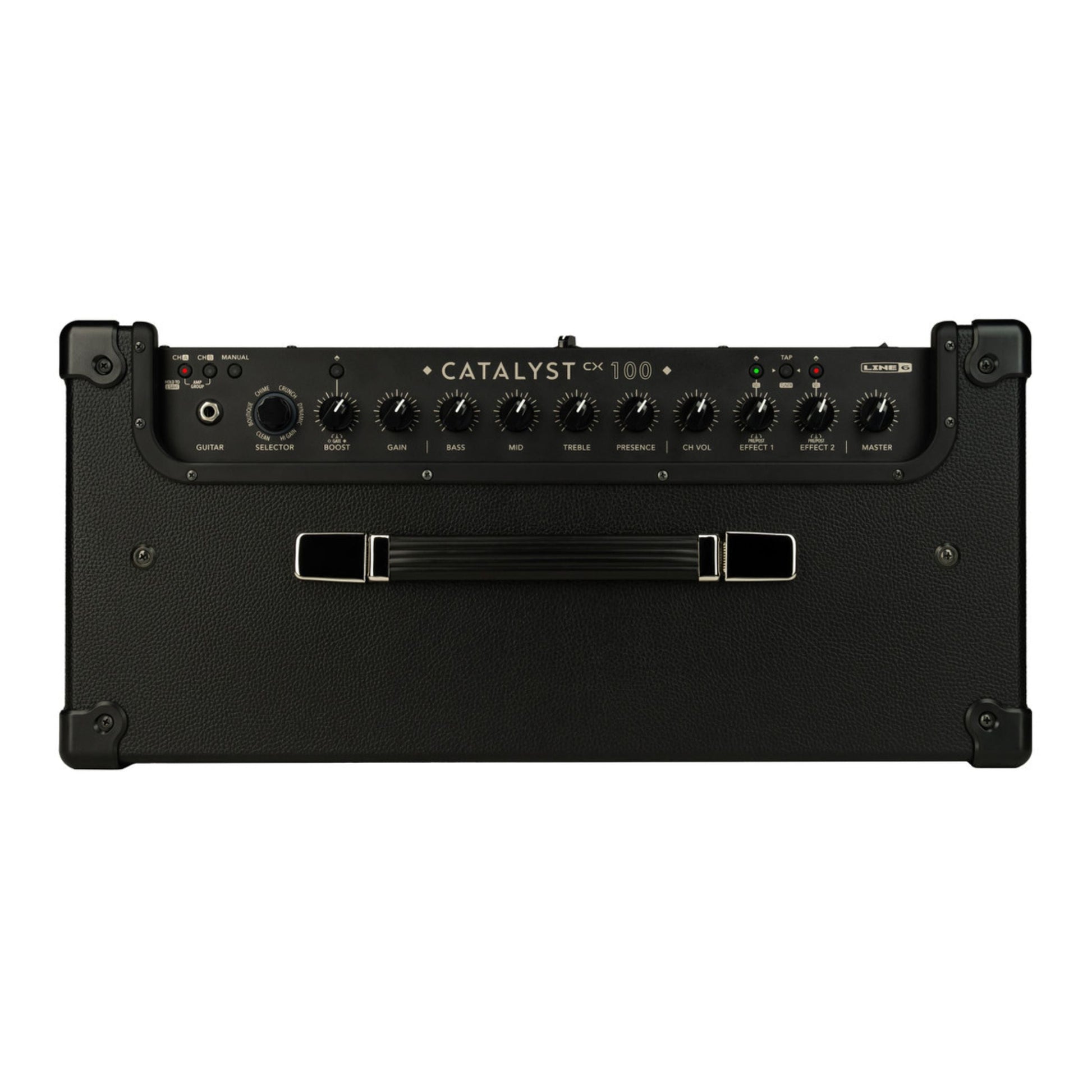 Catalyst® CX 100 is a dual-channel 1x12 combo amplifier that performs like a traditional guitar amp—while providing the increased versatility of a modern amp. Occupying the middle position in the Catalyst CX family of guitar amplifiers—which range from 200 to 60 watts—the 100-watt Catalyst CX 100 is powerful enough for most gigs, while also sporting studio-friendly features such as a USB audio interface. The sturdily constructed Catalyst CX 100 amplifier offers 12 Amp Voicings—ranging from pristine clean to modern high-gain—derived from the Helix® amp and effects processor. Each Amp Voicing is matched with a custom Boost type, and there are also 24 HX®-quality effects spanning four effects categories. Additional features include a Tap/Tuner button, an XLR line output, an effects loop, a Power Amp input for using the Catalyst CX as a powered speaker, MIDI functionality, a 2-channel USB recording interface, and power output options. The free Catalyst Edit app for desktop and mobile devices provides deep editing capabilities. Add an optional LFS2 footswitch for even more flexibility, and an optional cover to protect your combo.