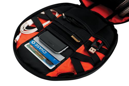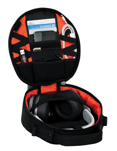 • Velvet lined, padded compartment with hook & loop and elastic mesh to secure headphones