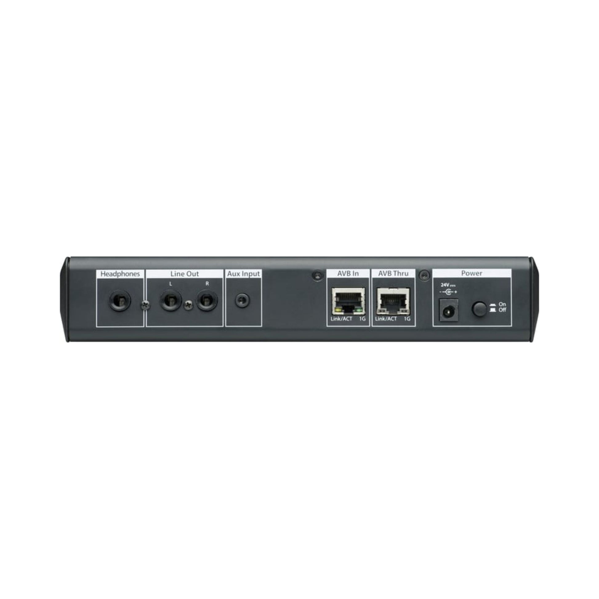 The EarMix 16M can be powered with its included external power supply but in many cases – such as when it's difficult to provide power across multiple onstage locations – it's better to use Power over Ethernet (PoE). PoE is a technology that enables network cables to carry electrical power to compatible devices. With PoE, a single cable delivers both network data, such as digital audio, and electrical power. You can locate a PoE-enabled device anywhere you can run an Ethernet cable because you don't need a local power source. Moreover, PreSonus' SW5E five-port AVB switch enables you to connect multiple EarMix 16Ms to the AVB network and provides PoE.