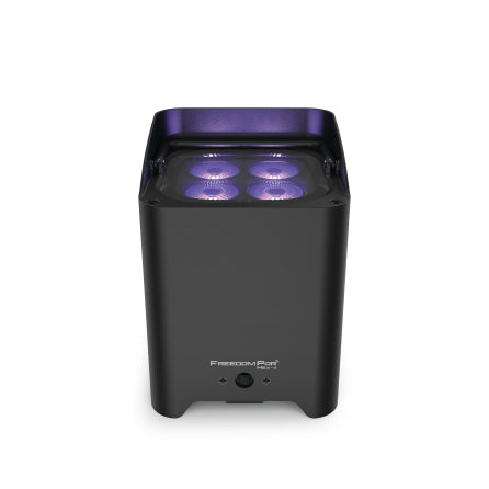 The Freedom Par Hex-4 is the most colorful model in the next generation of the Freedom Par family. It has four 10-watt RGBAW+UV LEDs for that extra punch and the special effects that white and UV add to color mixing. The Freedom Par Hex-4 has a special limiter option for extending battery life so that when you use more than 4 colors you know you'll get a good long show! The Freedom Par Hex-4 comes in black or white housing so it fits into any décor and travels safely while charging using the Freedom Charge 9 road case. White housing not available in European Markets.