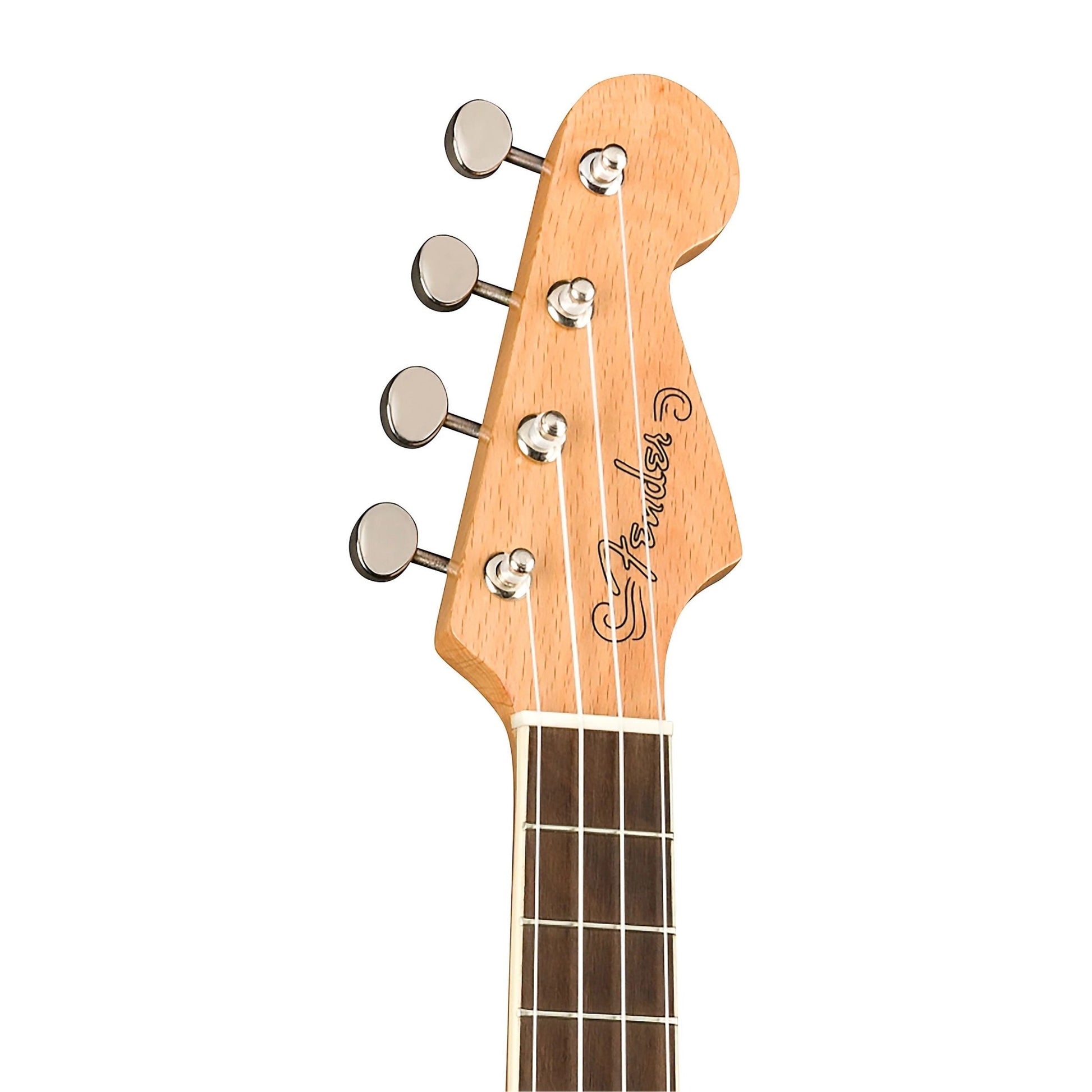 Tipping the hat to Fender's iconic guitar body shapes, the Fullerton Series ukuleles are nothing short of electric. The Fullerton Stratocaster departs from traditional ukulele construction and aesthetics, while remaining faithful to Fender's history. The Stratocaster ukulele's pickguard, signature finish color options, and 4-in-line headstock can only be categorized as quintessentially Fender. The Fullerton Stratocaster is the perfect choice for the ukulele player looking to inject the spirit of rock 'n roll into every performance.