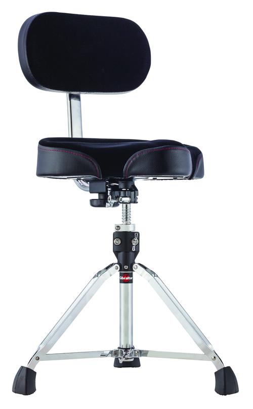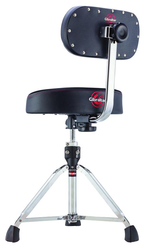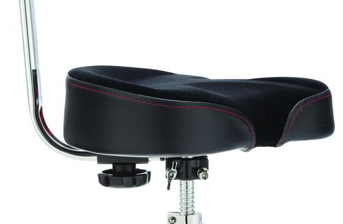 This heavy duty, double braced throne is built to withstand the roughest treatment. The durable, vinyl motorcycle-style top has thigh cutouts and memory foam, allowing maximum mobility and comfort. Adjust the height by spinning the top in either direction and lock it in place. The adjustable backrest provides lower back support for long playing sessions.