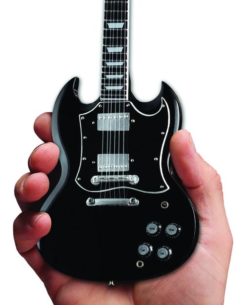 These miniature replica model guitars are officially licensed to commemorate iconic Gibson(TM) instruments. Each 1:4 scale ornamental replica guitar is individually handcrafted with solid wood and metal tuning keys. Each guitar model is approximately 10-inches in length and comes complete with a high-quality miniature adjustable A-frame stand and guitar case gift box. Axe Heaven Miniature Replicas look great, but are not playable.