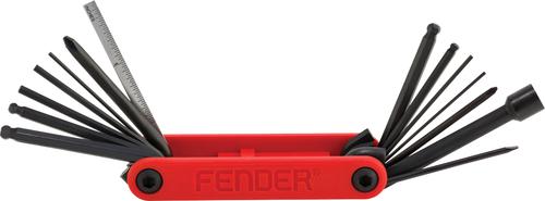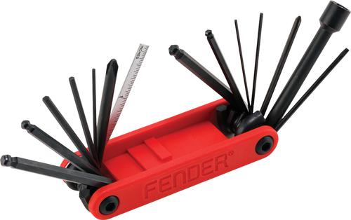 Fender's Guitar & Bass Multi-Tool is a 14-in-1 compact tool designed for use with Fender models as well as virtually any other make or model. Its one-piece body allows for ease of use and rotation while the included truss rod size hex wrenches are ball end for easy access. Featuring standard and metric sizing, this multi-tool serves as a toolbox in your pocket, providing maximum functionality for all of your instrument repair and tech work needs.