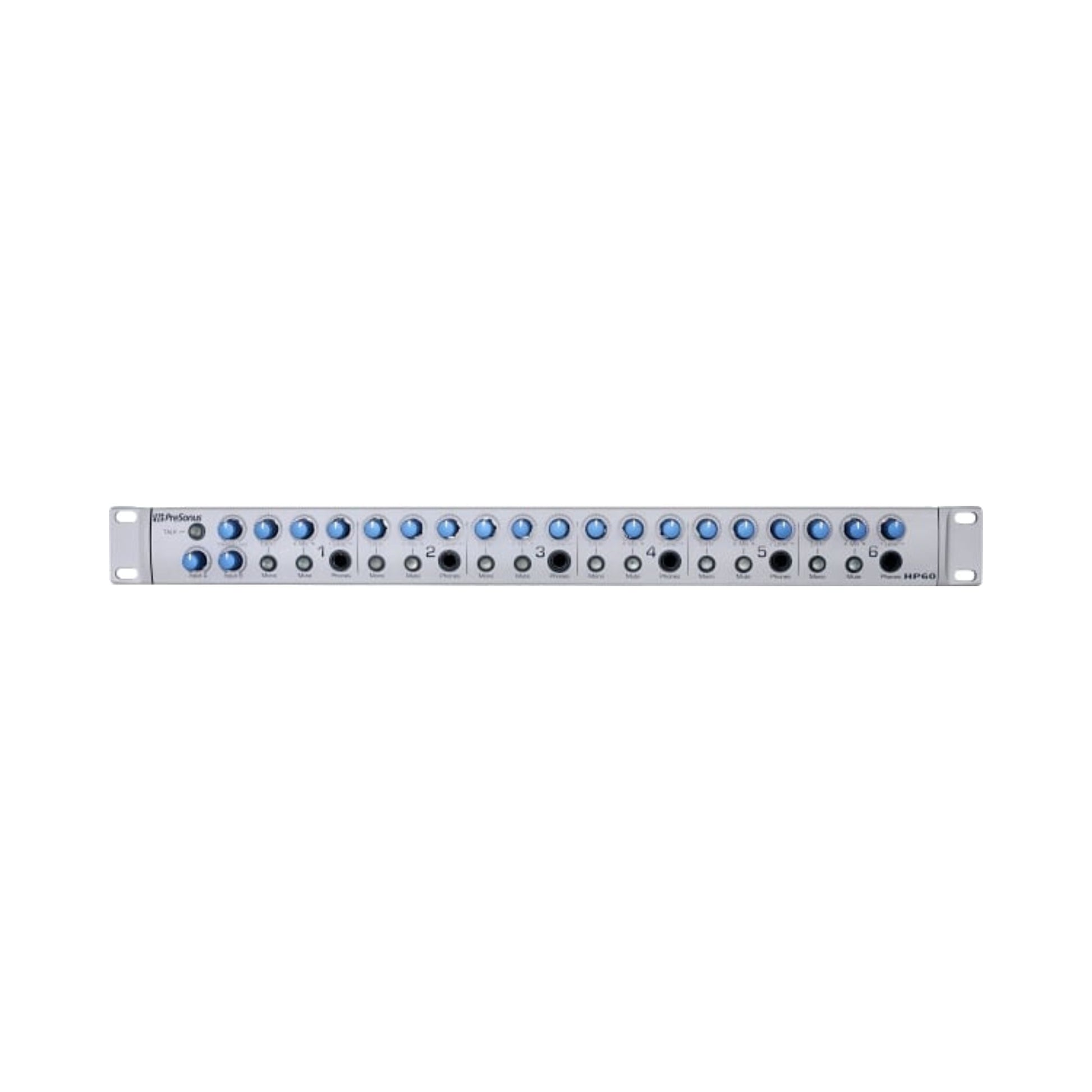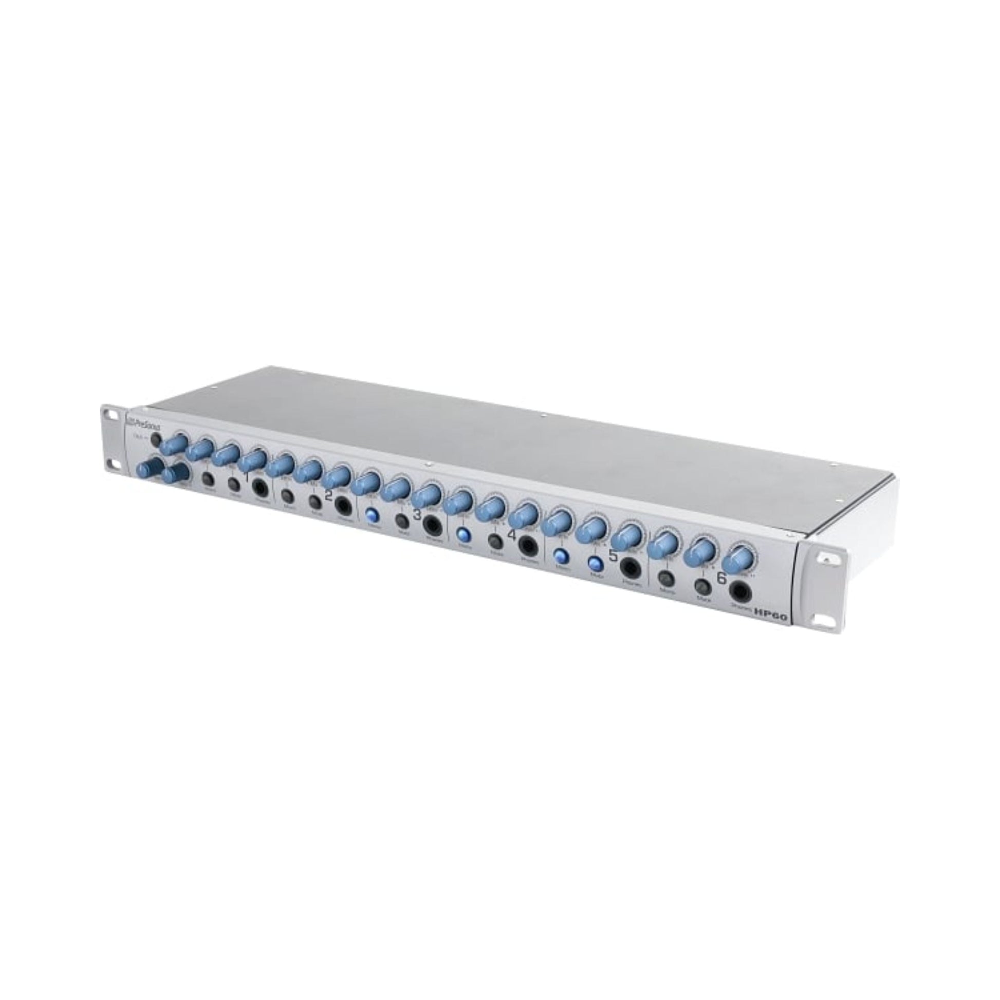 The HP60 solves a host of common headphone-monitoring problems. Each of its six headphone amps puts out 150 mW; if you can't hear this headphone system, you're stone deaf. Two global input channels and a Mix control let you adjust the click for each musician. Individual inputs let you send each musician a custom mix for “more me.”