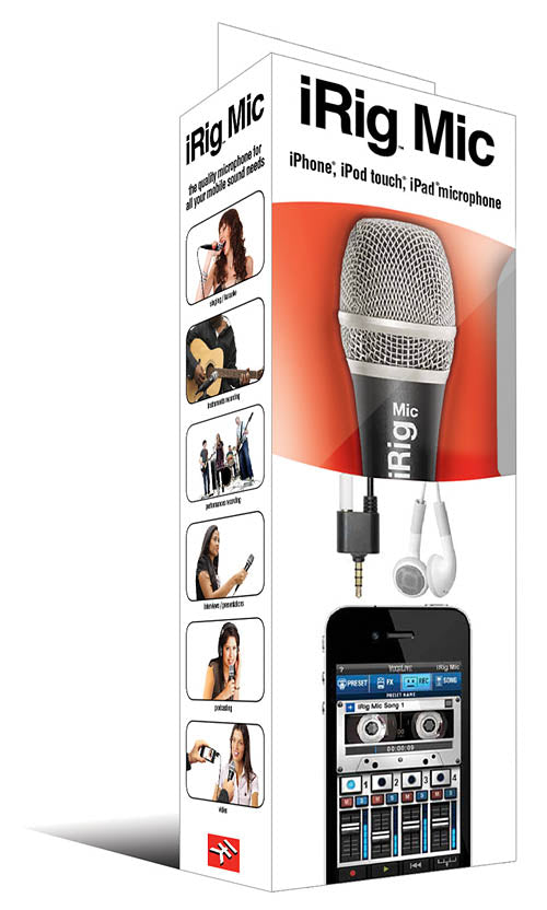 iRig Mic is the first handheld quality condenser microphone for iPhone, iPod touch and iPad – designed for all vocal and mobile sound needs. It's ideal for the singer, vocalist and songwriter on the move, but also perfect for recording speeches, instruments, performances or any other sound sources in the studio, on stage or in the field.