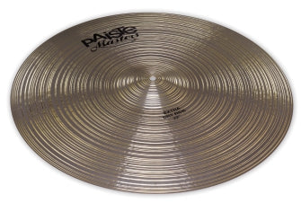 Sound Character: Dark, very dry, deep. Medium wide range, complex mix. Fairly soft, bouncy feel. Very controllable., Woody, pronounced, warm ping over a very dry low-pitched wash. Precise, earthy cymbal for defined, controlled playing in many musical styles.