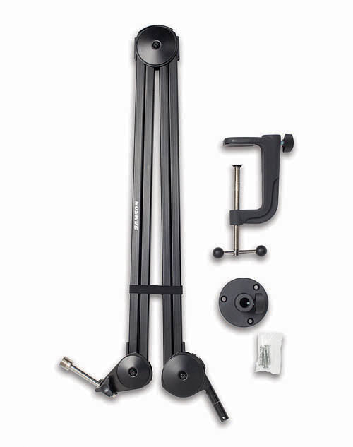 With two mounting options included with each, the MBA28 and MBA38 can be temporarily attached to a table or desk with the C-clamp mount, or more permanently fixed to a surface with the flange mount. In combination with durable steel construction, both mic boom arms offer 58″-27 mic clip threading that can accommodate any mic weighing up to five pounds.