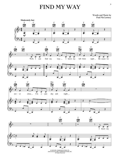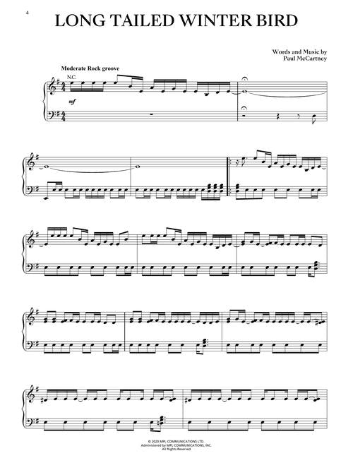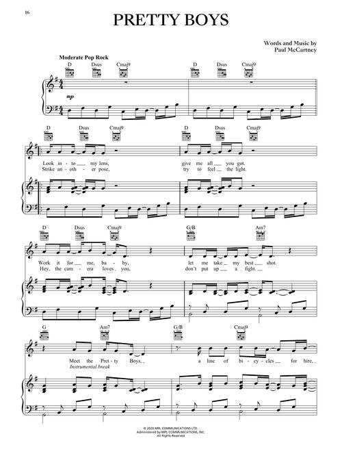 11 songs from the brand new album by the legendary Sir Paul McCartney. Our folio includes: Deep Deep Feeling • Deep Down • Find My Way • The Kiss of Venus • Lavatory Lil • Long Tailed Winter Bird • Pretty Boys • Seize the Day • Slidin' • Winter Bird / When Winter Comes • Women and Wives. This beautiful collection even includes a scrapbook of color photos from the making of the album.