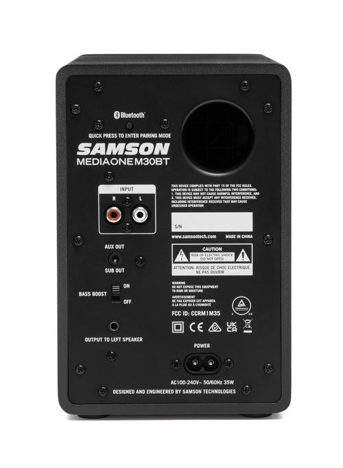 Create the ultimate desktop listening environment with the Samson MediaOne M30BT Powered Studio Monitors. Great for home studios, streaming and gaming stations, listening to your favorite music or enhancing your home office. Available as the MediaOne M30BT with 20 watts, 3 in. woofers. Each model includes a Class AB amplifier that delivers reliable and consistent sound from top to bottom.