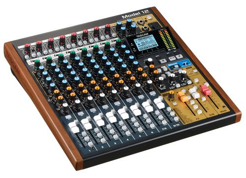 The Model 12 is a compact all-in-one integrated mixer designed for music and multimedia creators, songwriters and performers. Features include TASCAM's critically acclaimed multi-track recorder, USB audio/MIDI interface, DAW control functions, and unique podcasting capability including mix-minus and smartphone inputs. The Model 12 supports your creative process, production, and workflow from start to finish including podcasting.