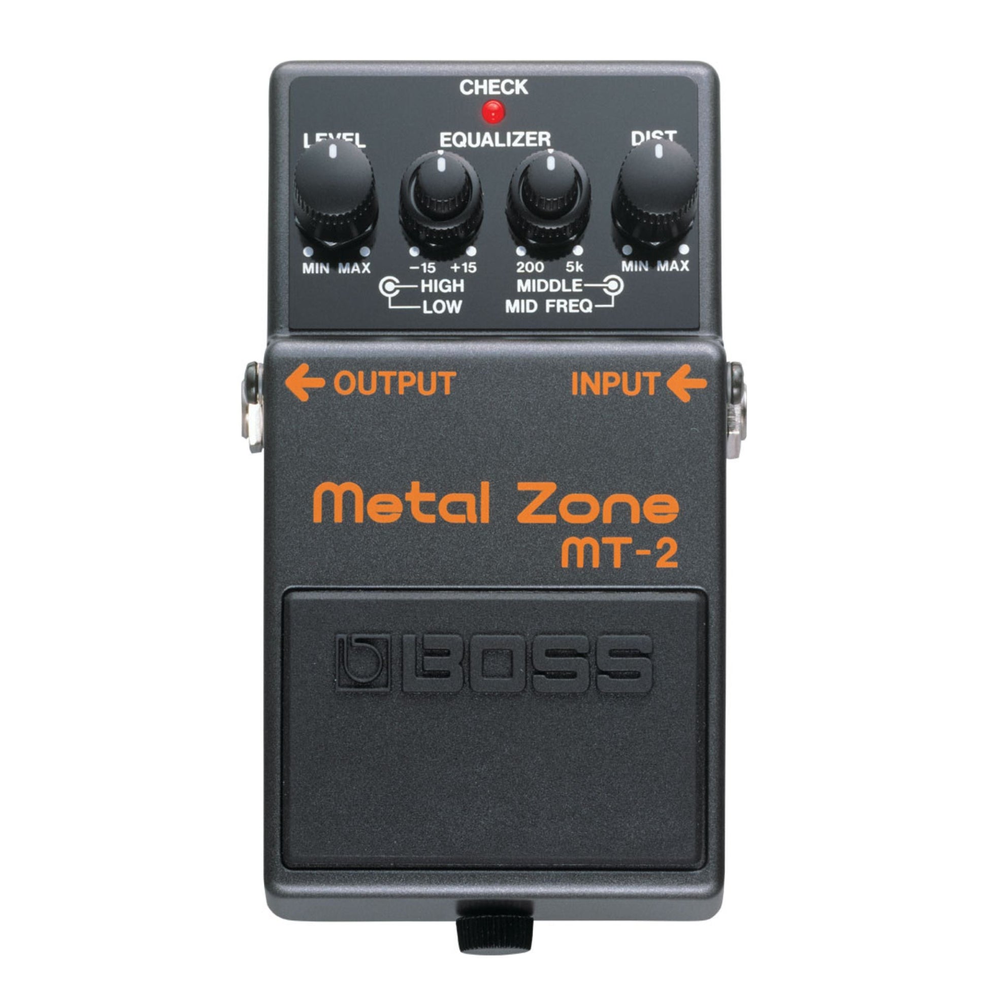 Introduced way back in 1991, the iconic MT-2 Metal Zone remains the king of high-gain distortion stomps for guitarists around the world, with over one million sold and counting. Its thick, saturated sound is perfectly suited for metal styles and is also great for playing heavy rhythms and soaring solos in other genres. With incredibly wide tone-shaping range and ultra-smooth sustain, the multifaceted MT-2 brings an array of rich distortion voices to any musical setting.
