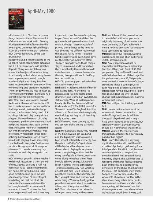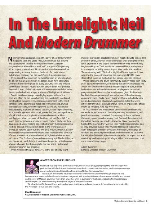 Neil Peart's ten appearances on the cover of Modern Drummer magazine span the years 1980, when he was five albums and several tours into his historic run with the Canadian progressive rock band Rush, and 2020, the year of his passing. No other drummer has come close to appearing so many times on the front of a drum publication, certainly not the world's most recognized one. This, the first installment in Modern Drummer magazine's Legends book series, collects all nine of Peart's cover stories, plus the complete contents of his May 2020 Modern Drummer tribute issue. Highlights include analyses of Neil's performances on every Rush studio album, a survey of the evolution of his famous live drumkits, transcriptions of deep Rush cuts, dozens of photos, and much more.