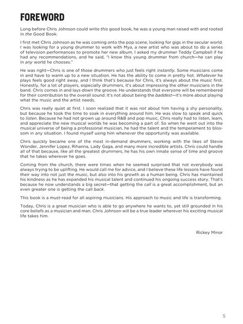 “This book is a must-read for all aspiring musicians.” –Bassist, producer, and musical director Rickey Minor