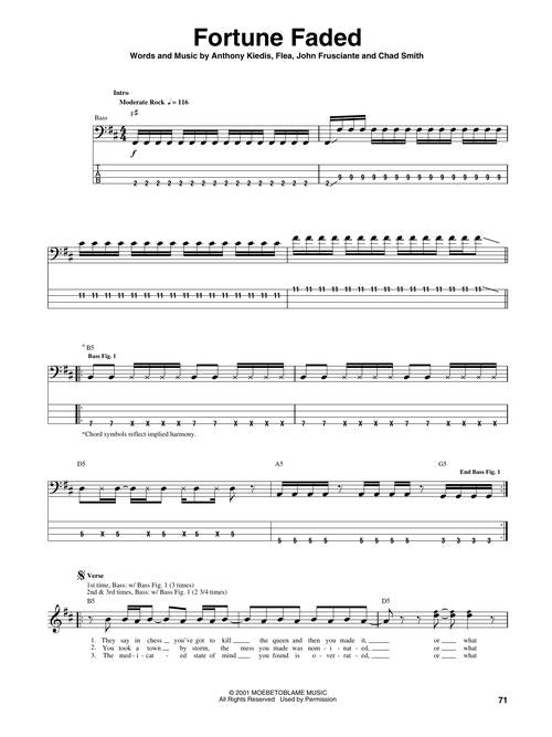 Essential for Peppers fans! Features Flea's inimitable playing transcribed note for note with tab on top tracks from Mother's Milk to By the Way, plus two new bonus songs! 16 hits: Breaking the Girl • By the Way • Californication • Fortune Faded • Give It Away • Higher Ground • My Friends • Otherside • Parallel Universe • Road Trippin' • Save the Population • Scar Tissue • Soul to Squeeze • Suck My Kiss • Under the Bridge • Universally Speaking.