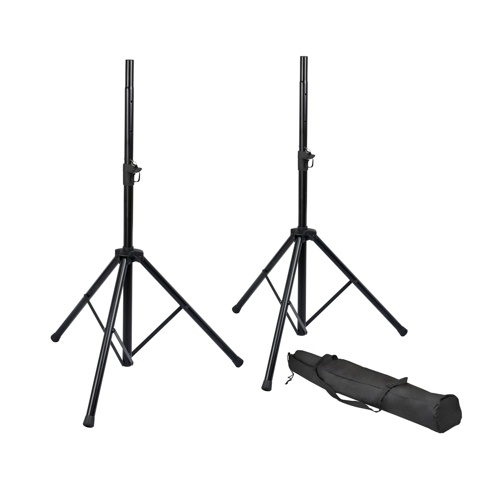 Rok-It Set of Two (2) Tripod Base Speaker Stands with Adjustable Height Twist Knob, Safety Pins and Rubber Feet. Includes Carry Bag.