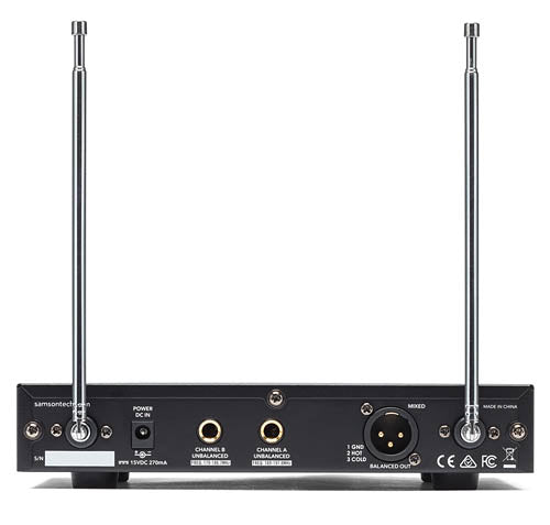 Samson's Stage 212 is a frequency-agile, dual-channel wireless microphone system that provides two handheld dynamic microphones that transmit to a single rugged metal receiver. Each handheld features Samson's Q6 mic element, providing crisp, clear sound and reliable VHF wireless performance for karaoke, live presentation, education, house of worship and other applications where two mics are more agile than one.