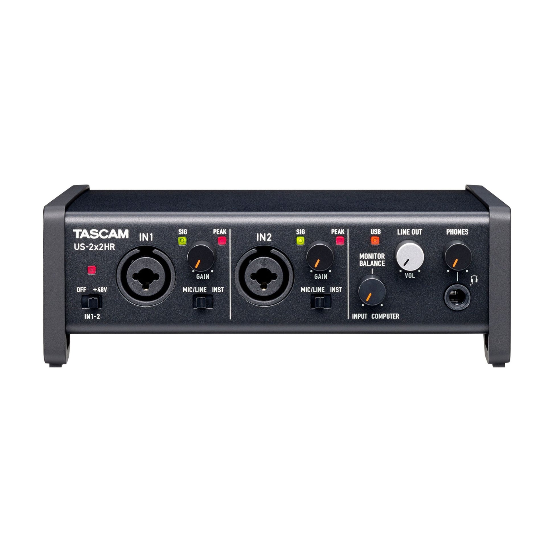 2 combo jack mic/line inputs with guitar input support audio interface with implemented MIDI IN/OUT ports. Equipped loopback function and OBS support makes this interface applicable for podcasts and live streaming. The new US-2x2HR offers simple and intuitive operation plus sophisticated looks, a rich assortment of software bundles, and improved audio performance with 192 kHz support, thanks to the newly improved audio circuit.