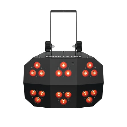 Brilliance, brightness and versatility are packed inside this powerhouse multi-purpose effect light that packs a punch with hex color (RGBAW+UV) LEDs. Wash FX Hex functions as a chase effect, blinder, or a wash light. 6 chasing zones mean Wash FX Hex can be used as a regular wash light or eye-candy effect and an advanced master/slave feature that allows you to mirror effects between units. Multiple control options include stand-alone mode, DMX, and IR as Wash FX Hex is compatible with an optional IRC-6 wireless remote for wireless triggering. Power linking saves time running cables.